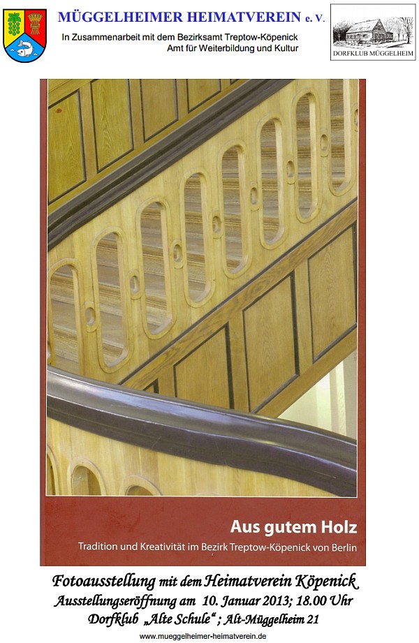 Tradition und Kreativität im Bezirk Treptow-Köpenick von Berlin. Eine Fotoausstellung im Dorfklub „Alte Schule“ Alt-Müggelheim 21 in 12559 Berlin. Ausstellungseröffnung am 10. Januar 2013 um 18:00 Uhr.