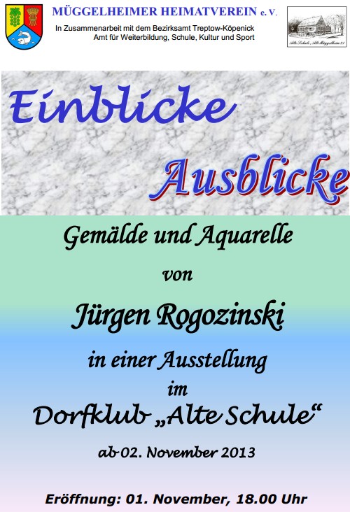 Gemälde und Aquarelle von Jürgen Rogozinski in einer Ausstellung vom 02.11.2013 im Dorfklub Müggelheim.