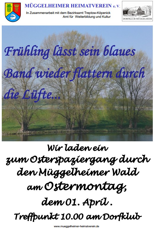 Wir laden ein zum Osterspaziergang durch den Müggelheimer Wald, am Ostermontag, dem 1. April.